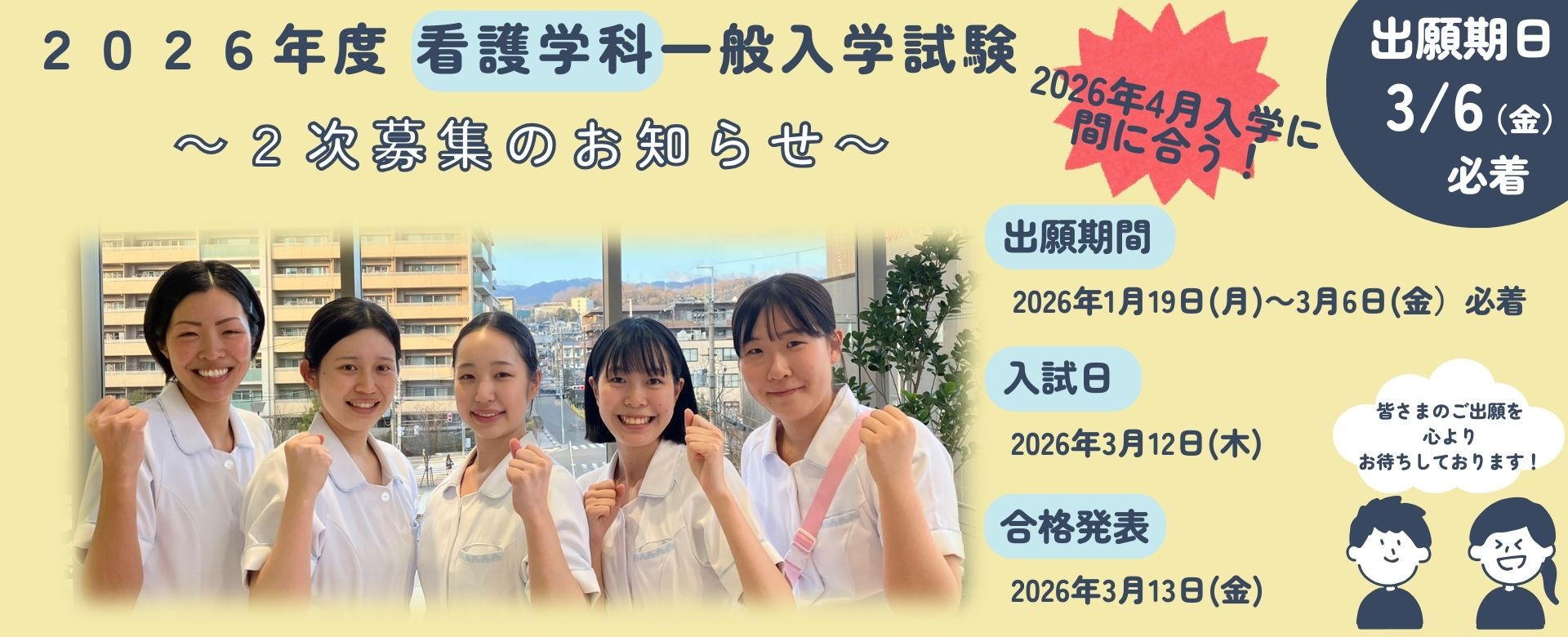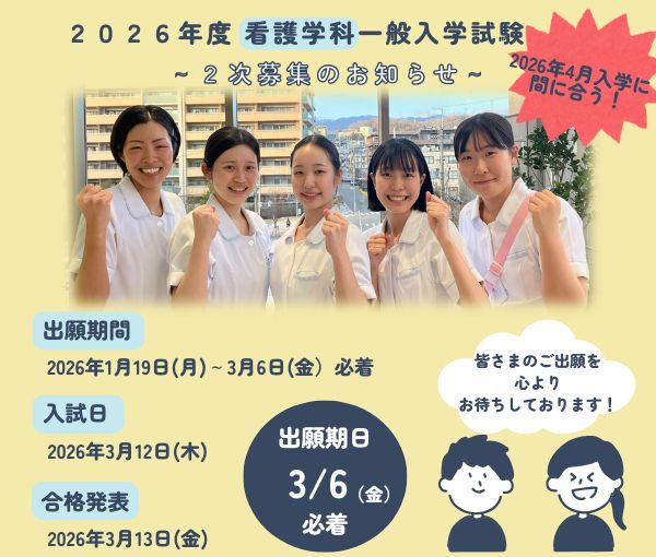 - まだ間に合います!2026年度看護学科一般入学試験 二次募集 のお知らせ
