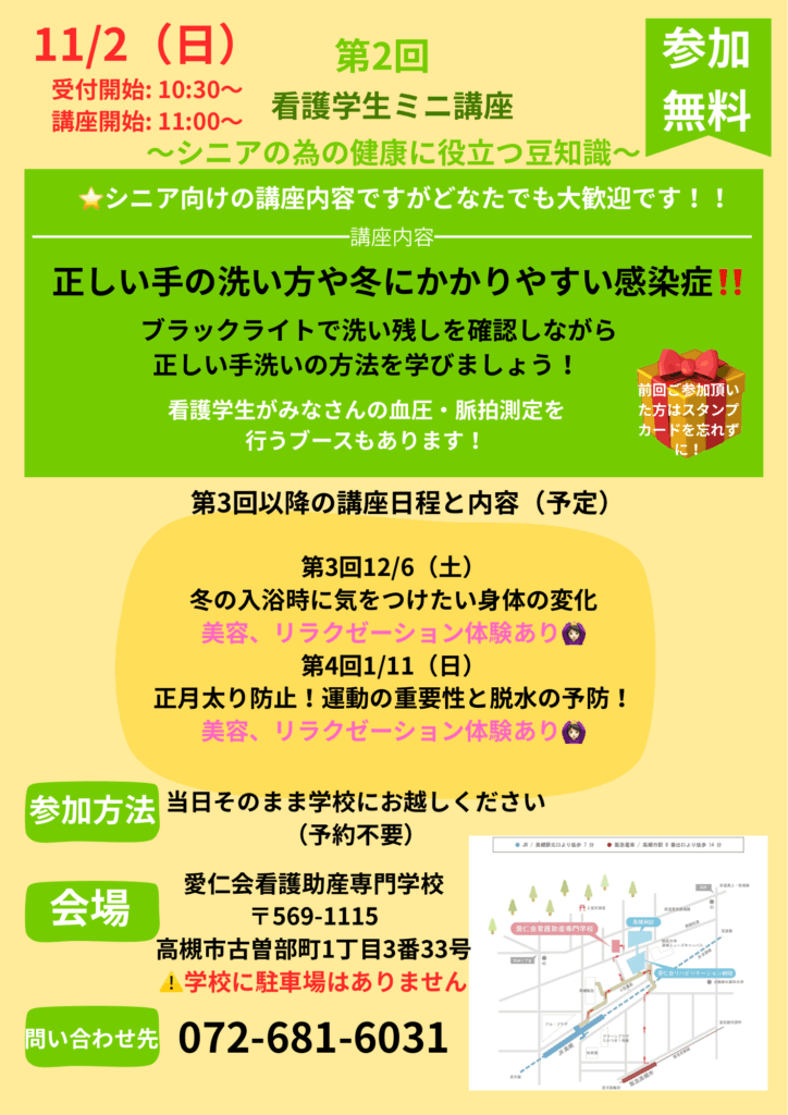 本校にて看護学生による 第2回看護学生ミニ講座~シニアのための健康に役立つ豆知識~