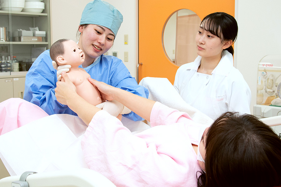 分娩介助技術や新生児蘇生、妊産褥婦の診察技術と助産診断とケアに関するグループ演習を体験していただけます。